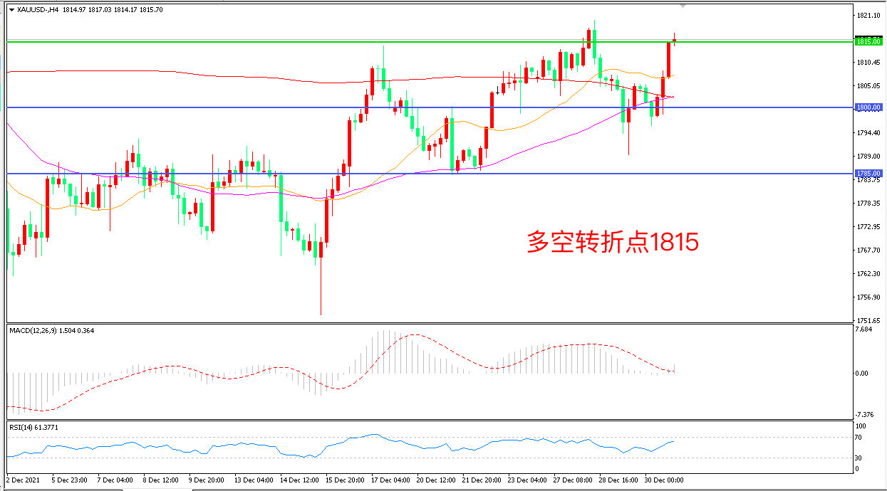 交易策略:在1815.00之上看涨,目标1830.00        1845.00