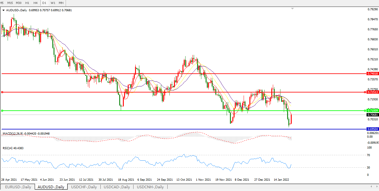 交易策略:0.7100下方看跌,目标0.69500.6800