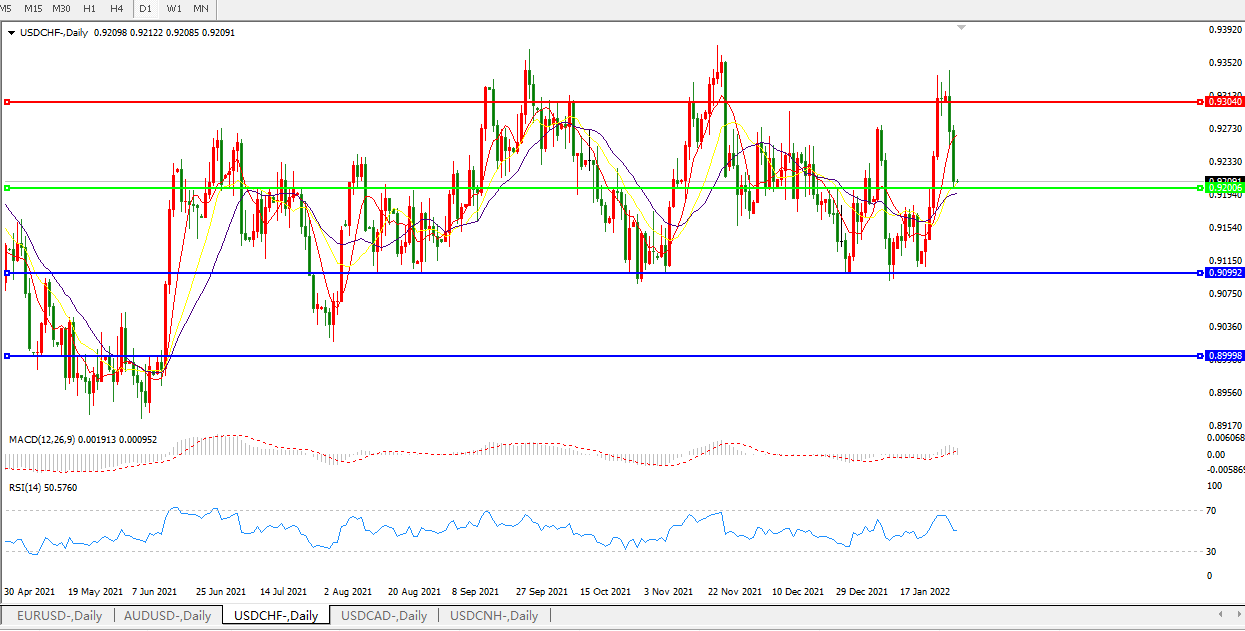 交易策略:0.9200上方看涨,目标0.9300、0.9400