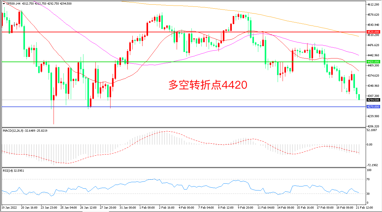 交易策略:在4420.00之下看跌,目标4270.00 4150.00