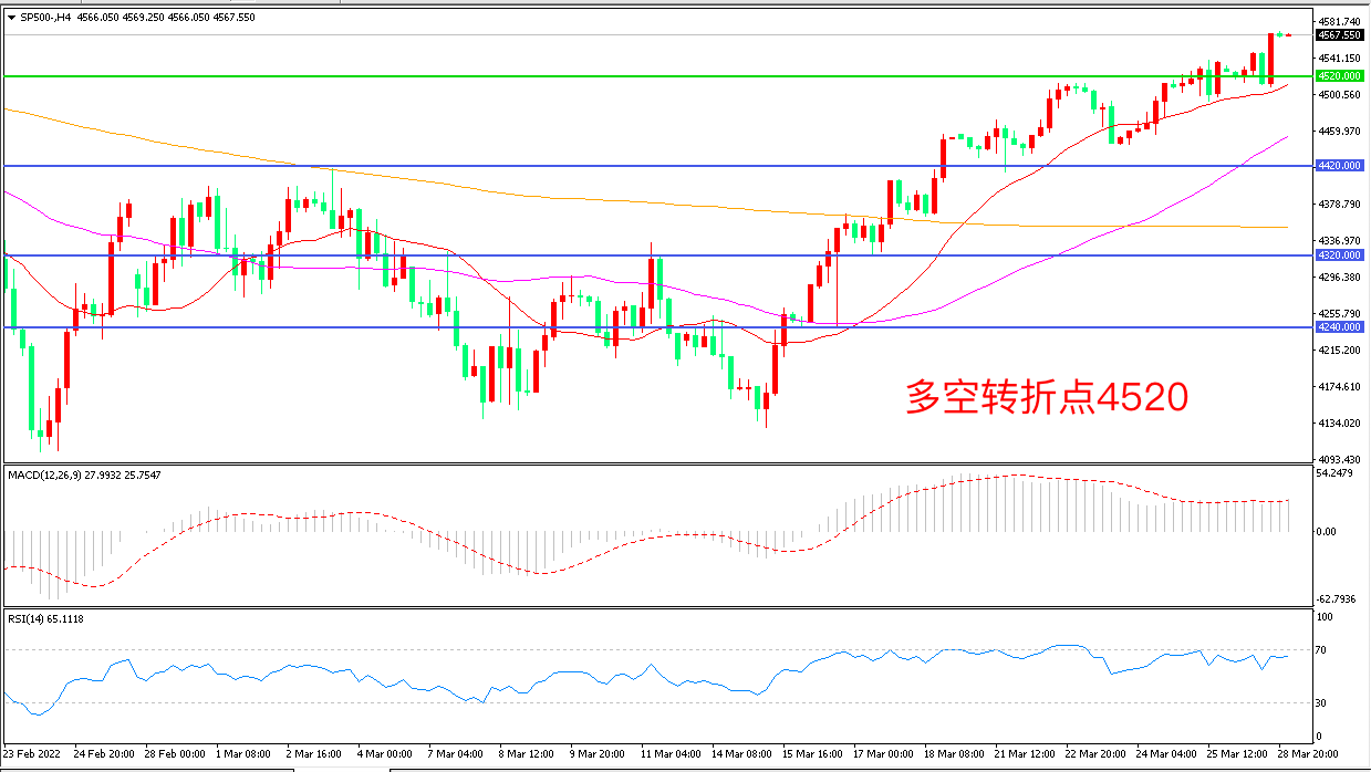 周一(3月29日),美股三大指数一度“跳水”,但盘中得到寻求让股东授权通过拆股支付股息的特斯拉为首蓝筹科技股力挺,扛住下跌的压力,标普500自低位大幅拉升,收报4566.55点。如果本周非农就业人口等重磅数据表现偏强,美股有望再度迎来上行。