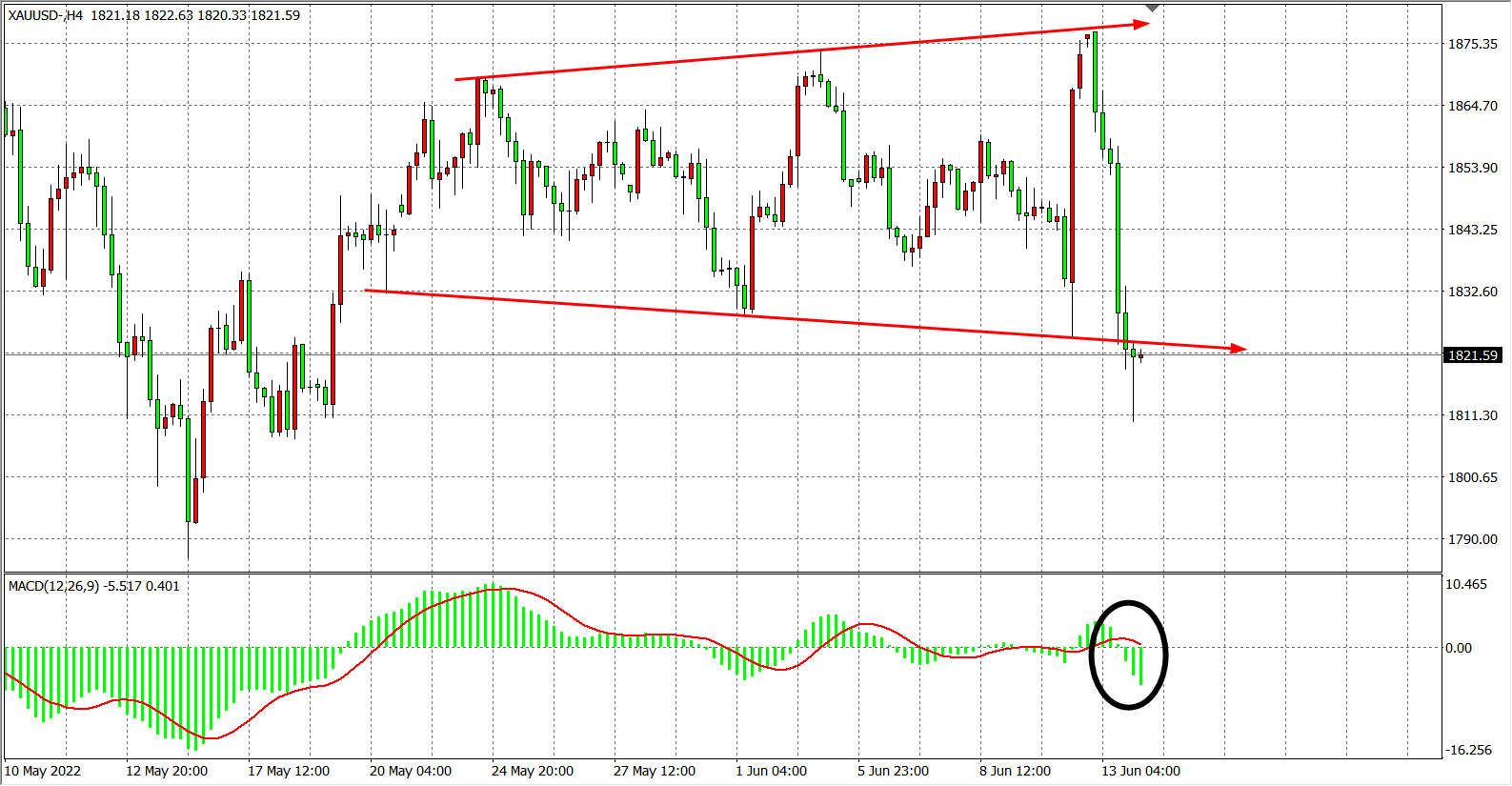 由于美国最新的通胀数据爆表,再度引发了市场对于美联储激进加息的猜想,现货黄金日内大跌3%跌破1820美元/盎司