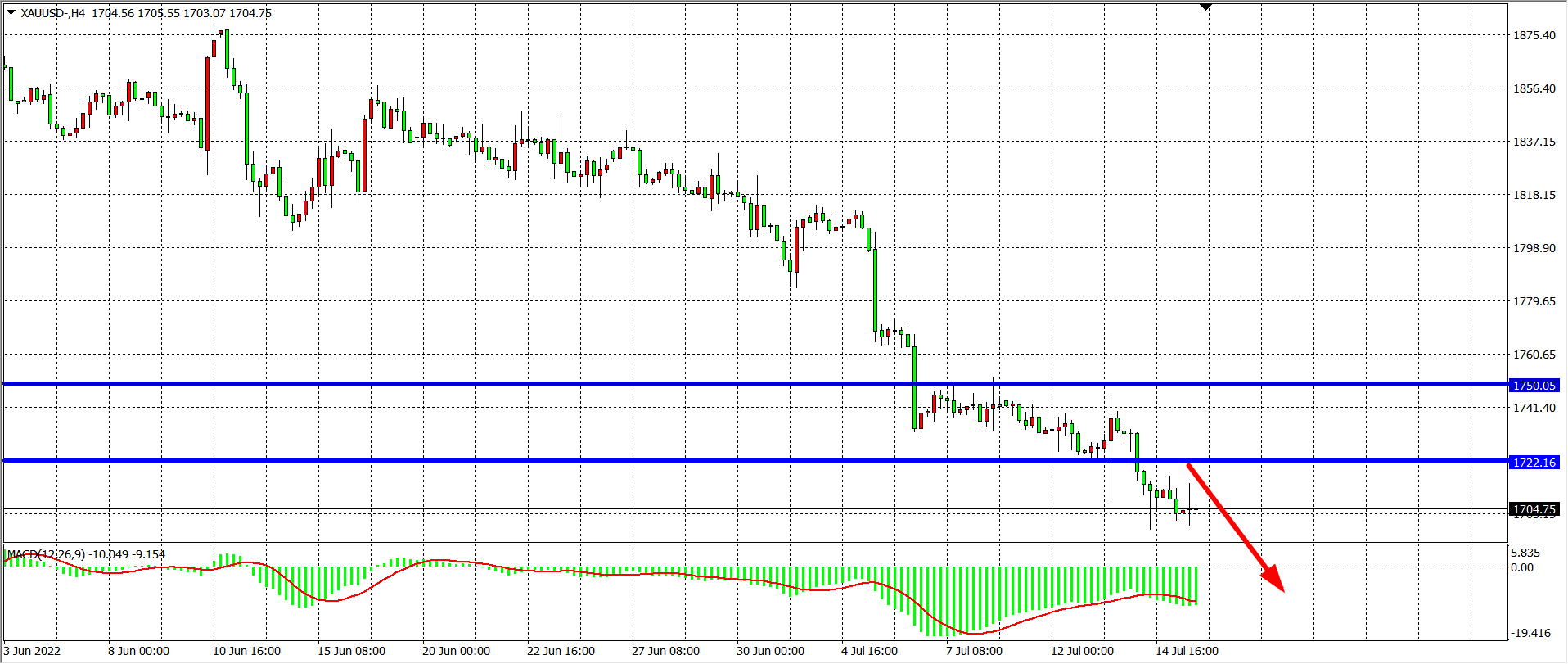 交易策略:在1722.00之下看跌,目标1690.00 1670.00