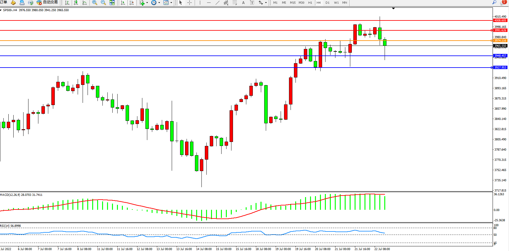 标普500指数7月22日(周五)收盘下跌35.85点,跌幅0.90%,报3963.10点;通胀和衰退将主导美联储加息路径。相较于加息100个基点,加息75个基点是没那么鹰派的选择,但也已经是美联储几十年来最激进的加息路线,这无疑也加剧了人们对经济衰退的担忧。