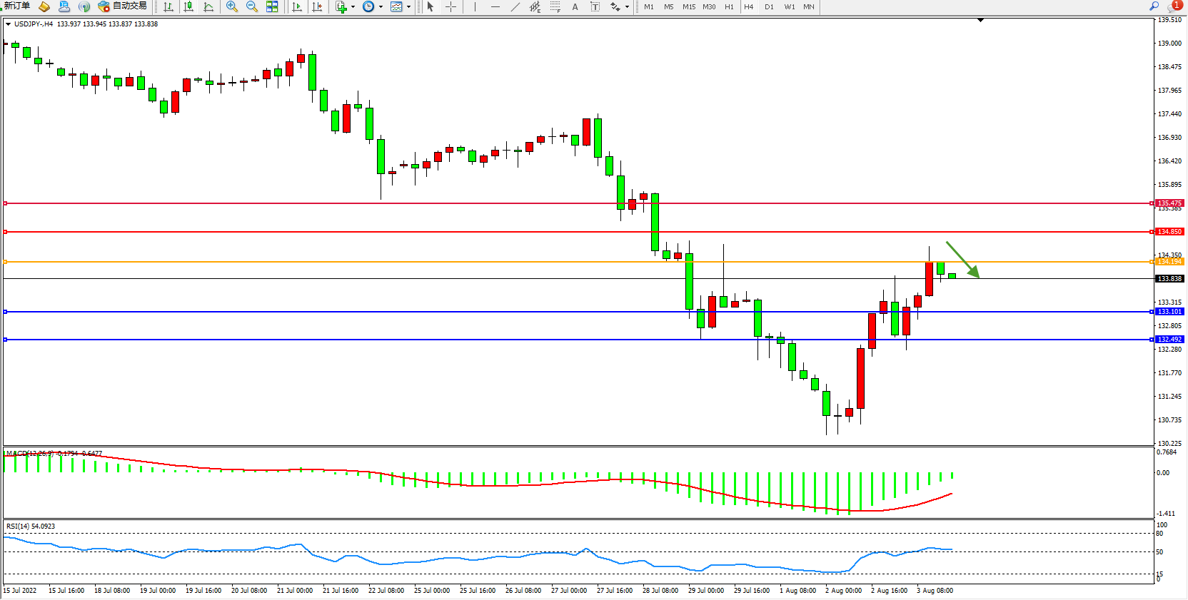 美日:低位反弹遇阻回撤 USDJPY  USDCHF