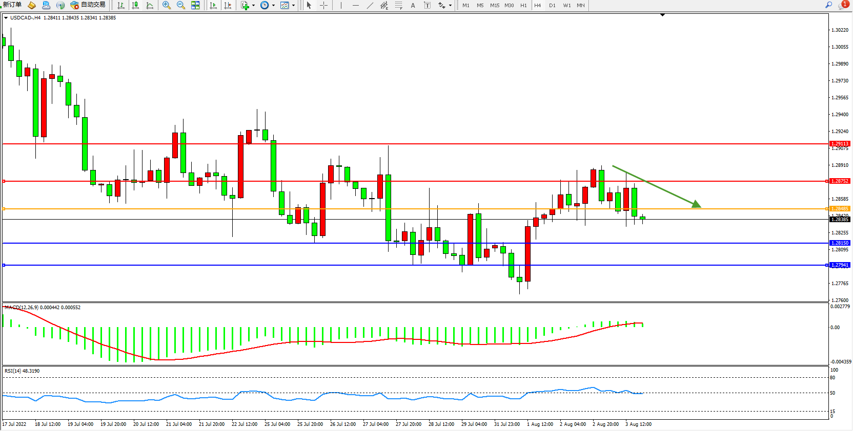 交易策略:1.28485下方看跌,目标1.28150、1.27951