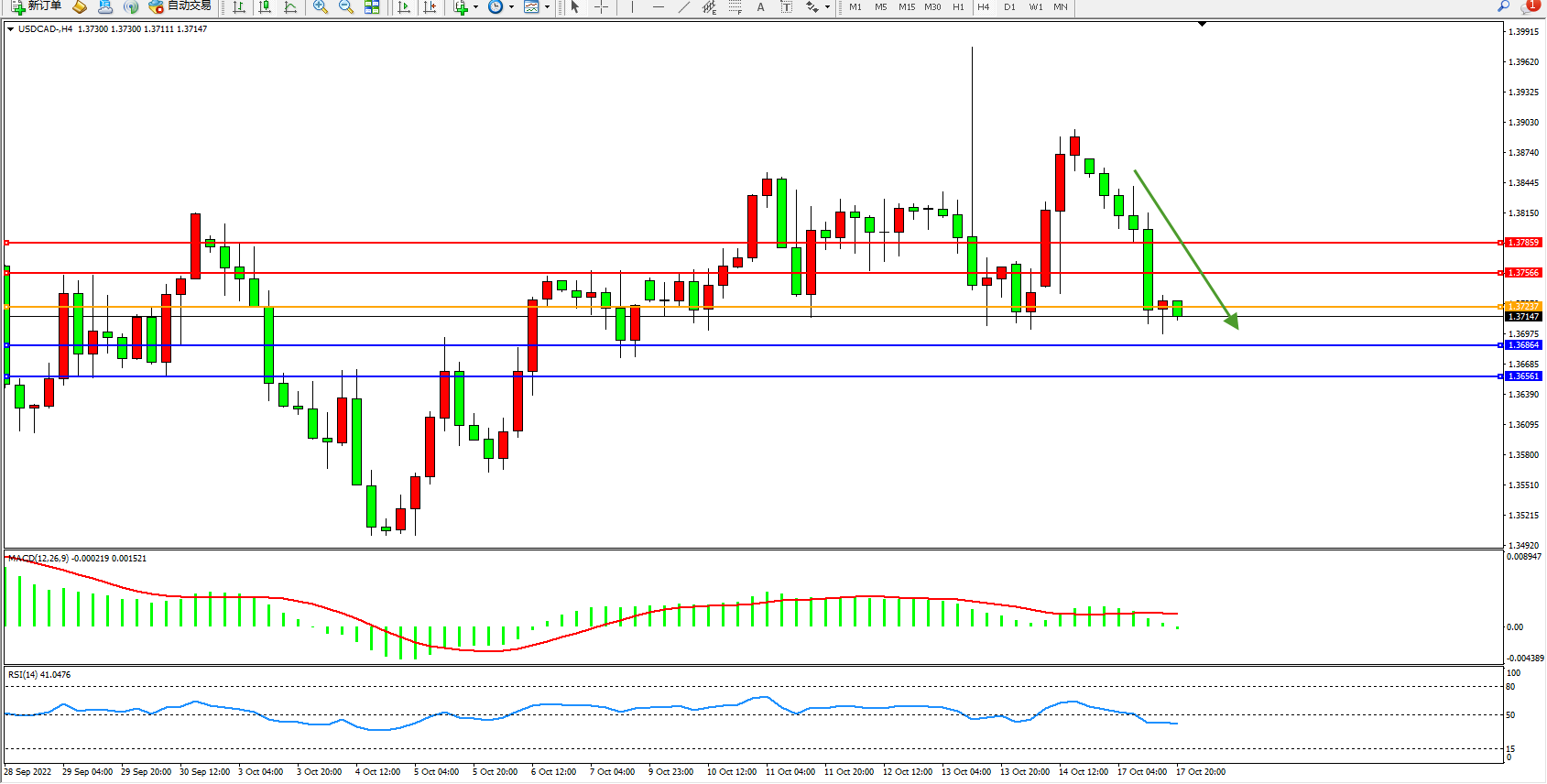 美元兑加元维持1.37147附近震荡,加拿大至10月14日全国经济信心指数 44.38,前值45.8。