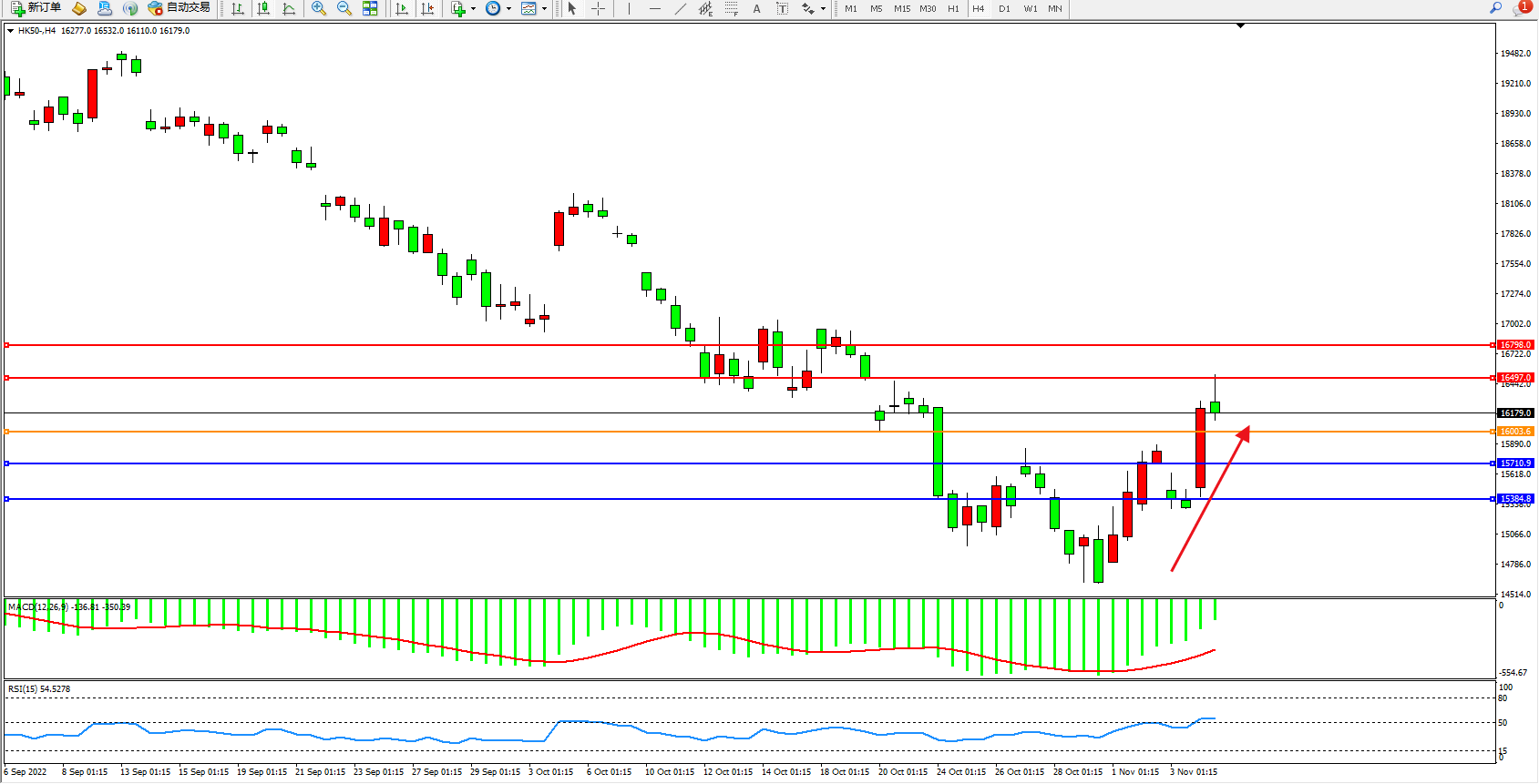 近期连续下跌的港股终见暴力反弹行情,市场做多情绪高涨。恒生科技指数一度涨至11%,午后稍有回落仍大幅收涨7.54%,重上3200点,恒指涨5.36%上扬超800点,收复16000点关口。恒指本周累涨8.73%,创2011年10月底以来最大单周涨幅;恒生科技指数本周累涨15.63%,创有记录以来最大单周涨幅。港股成交额报1886.45亿港元(上一交易日成交额为986.534亿港元),为6月以来最大单日成交额。