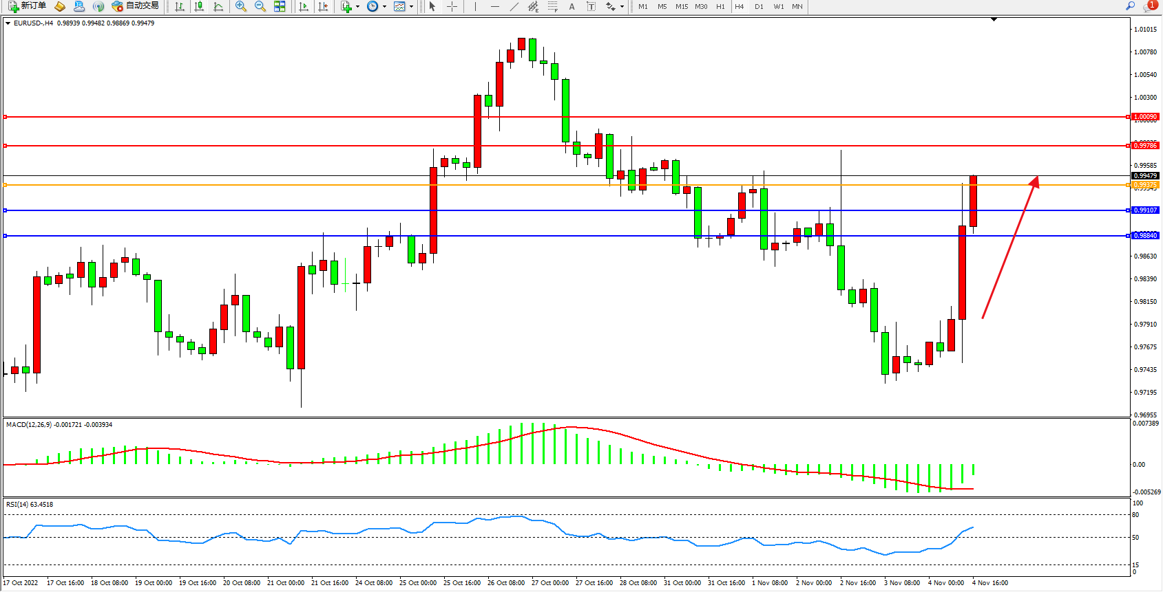 备选策略:0.99374下方看跌,目标0.99107、0.98840