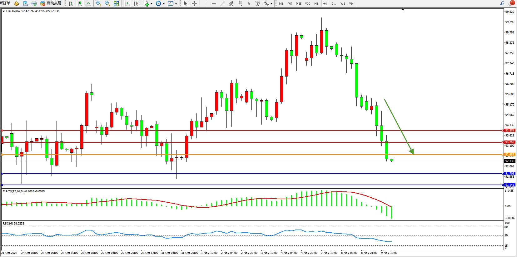 布油维持92.326附近震荡,美国截至11月4日当周EIA俄克拉荷马州-库欣原油库存 -92.3万桶,前值126.7万桶。美国至11月4日当周除却战略储备的商业原油库存为2021年7月2日当周以来最高。美国至11月4日当周EIA战略石油储备库存为1984年4月27日当周以来最低。