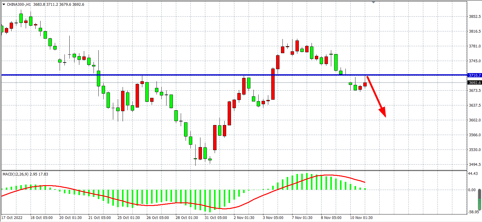 1小时图看,沪深300维持在3710之下运行,趋势偏向弱势,同时MACD量能在零轴之上急剧萎缩,显示行情短期内或进一步走弱。日内在3710之下看跌为主,下方目标3630-3550