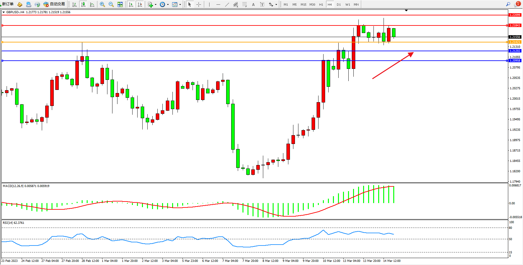 英镑兑美元维持1.21556附近震荡,经济增长势头的明显减弱可能会促使人们猜测利率即将见顶。在美国硅谷银行倒闭后,交易员大幅削减了终端利率押注。