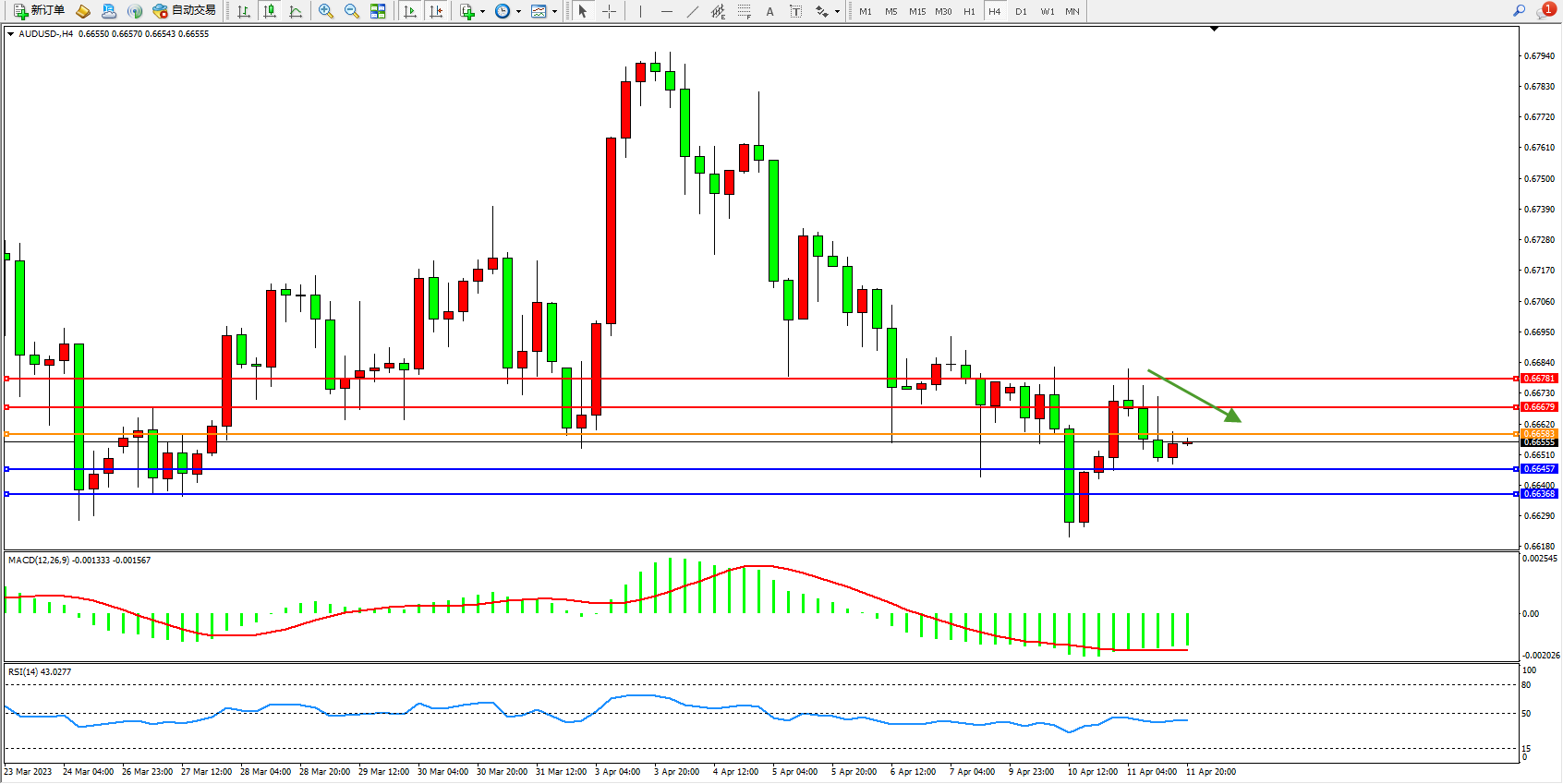 阻力位:0.66679  0.66781