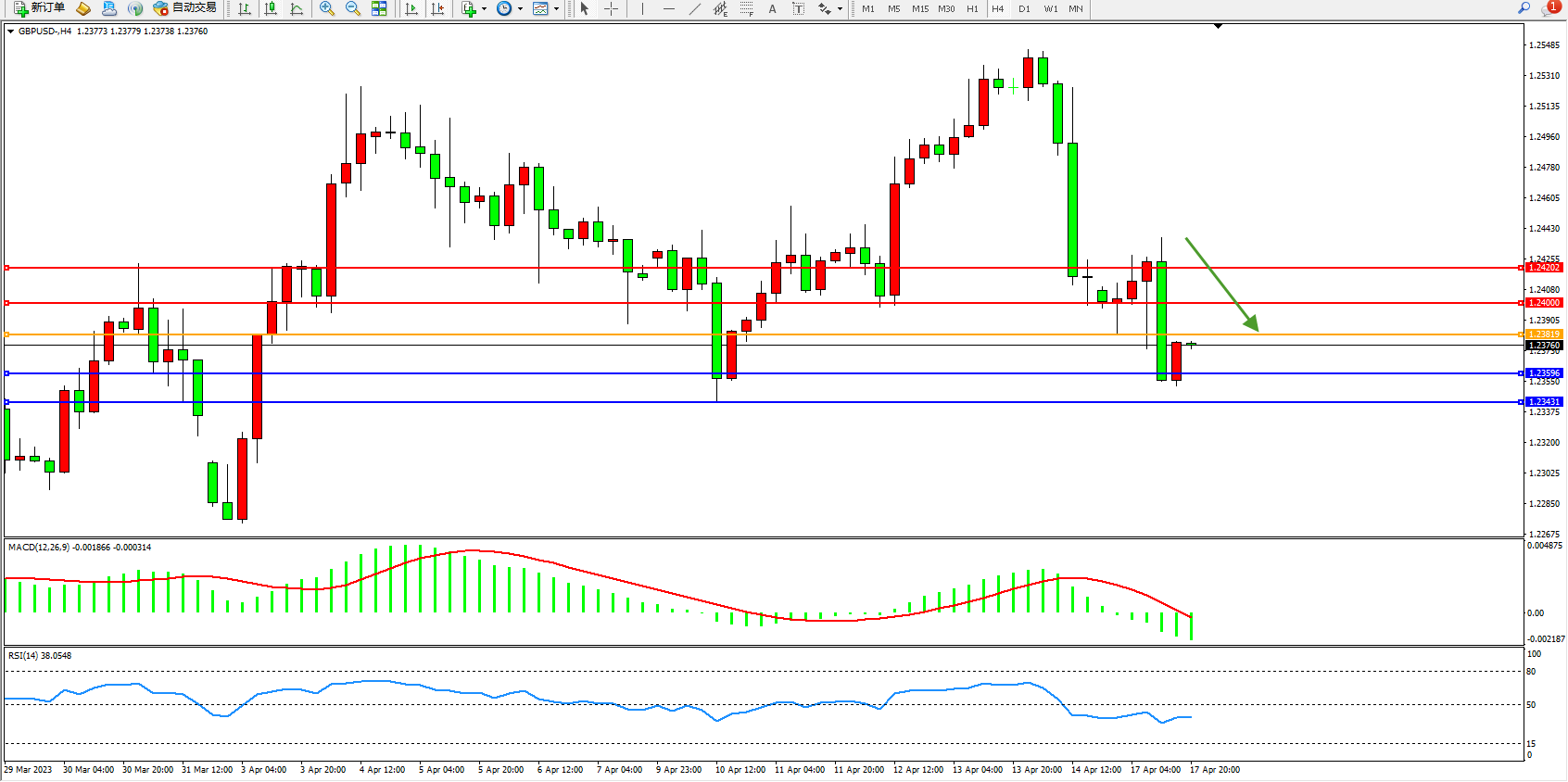 英镑美元GBPUSD ——4小时K线图显示: