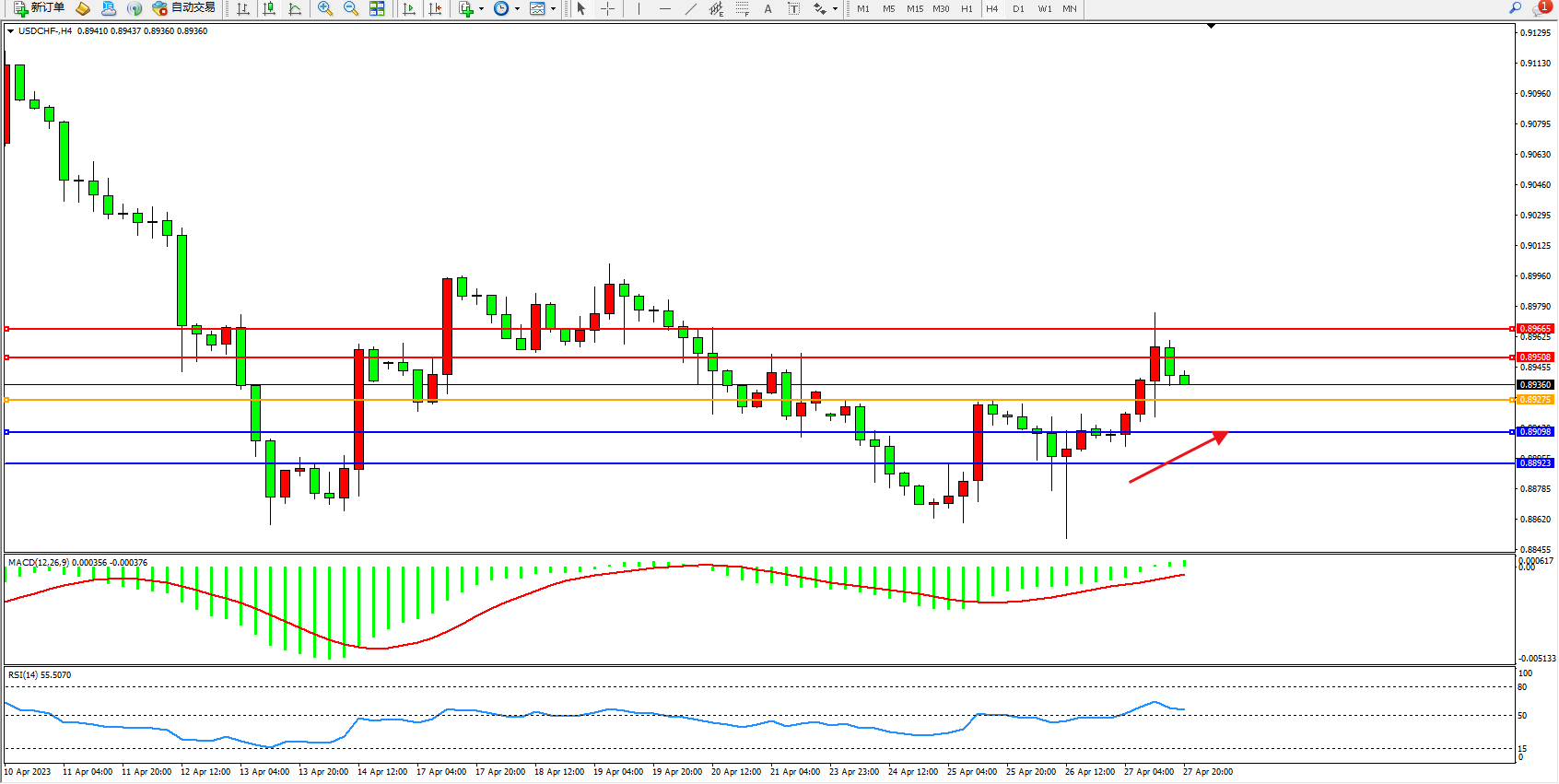 交易策略:0.89275上方看涨,目标0.89508 0.89665
