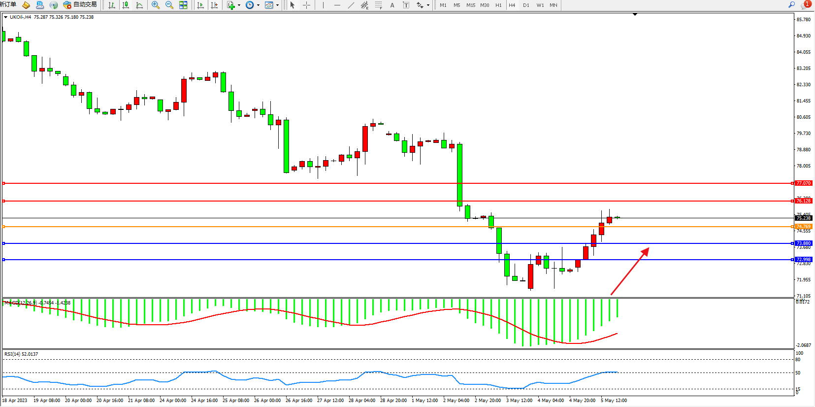 布油UKOil——4小时K线图显示: