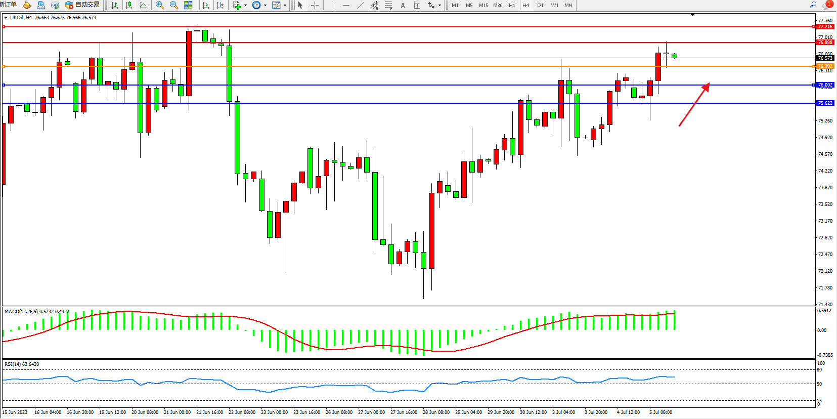 布油维持78.573附近震荡,由于担心需求疲软和全球主要央行继续加息可能引发经济低迷并进一步抑制燃料需求,一些产油国周一(7月3日)宣布新的供应削减措施,但此举对市场的提振作用有限。