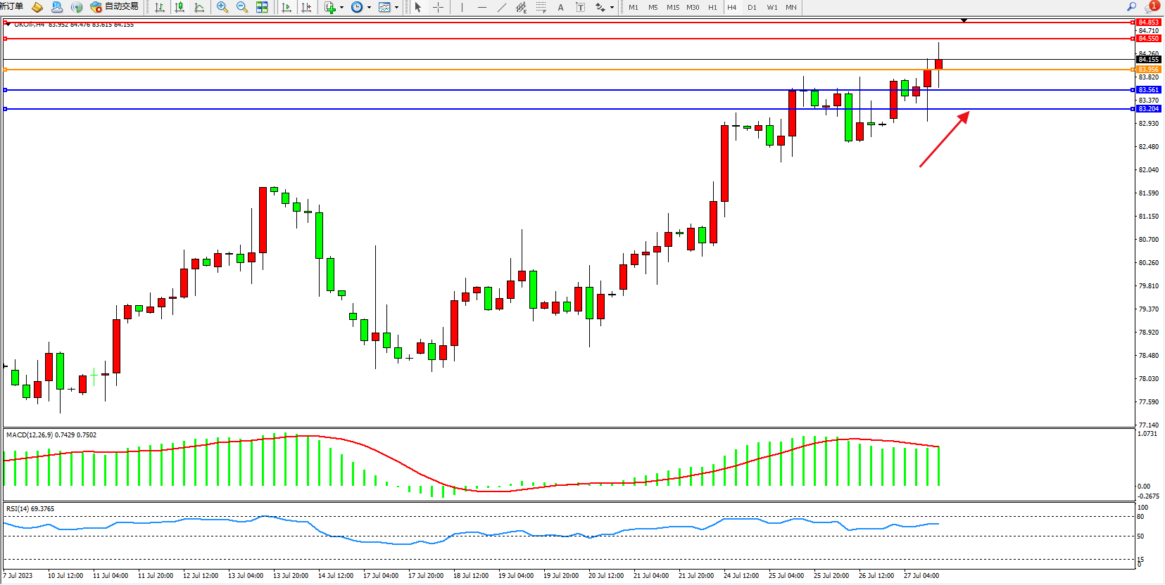 布油维持84.155附近震荡,市场焦点转向石油输出国组织及其盟友(OPEC+)即将在下周举行的月度联合部长级监测委员会会议,尤其关注沙特阿拉伯是否决定将其自愿减产100万桶/日的决定延长至9月份。