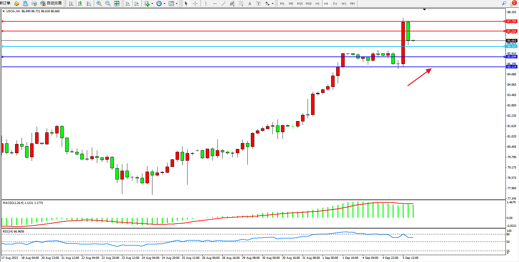 原油维持86.660附近震荡,沙特带头努力支撑油价,根据由OPEC和包括俄罗斯在内的盟国组成的OPEC+产油国集团达成的部分生产协议,沙特自愿大幅减产。