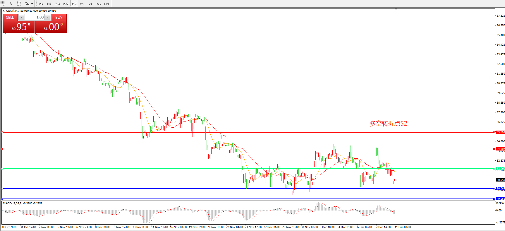 交易策略:在52.0之下看跌,目标50.00  49.00