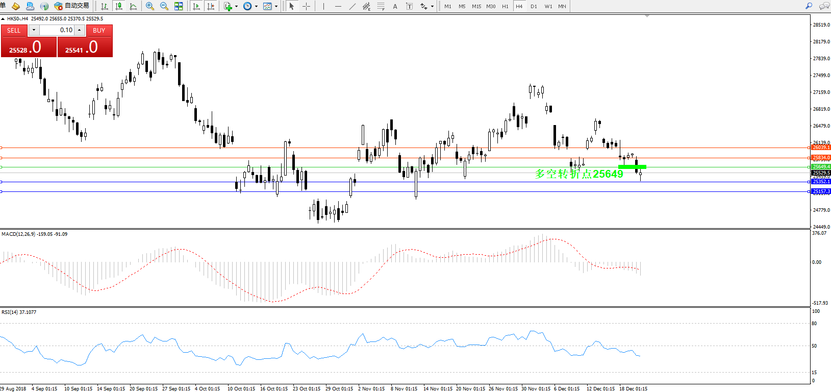 美联储坚持明年持续收紧政策的前景,并预测2019年旳升息次数较少,打击了对于该行在全球增长疲弱背景下将采取温和立场的希望,引发全球股市遭抛,恒指受其影响,直线下挫,香港恒生指数收盘跌0.9%25623.53点。