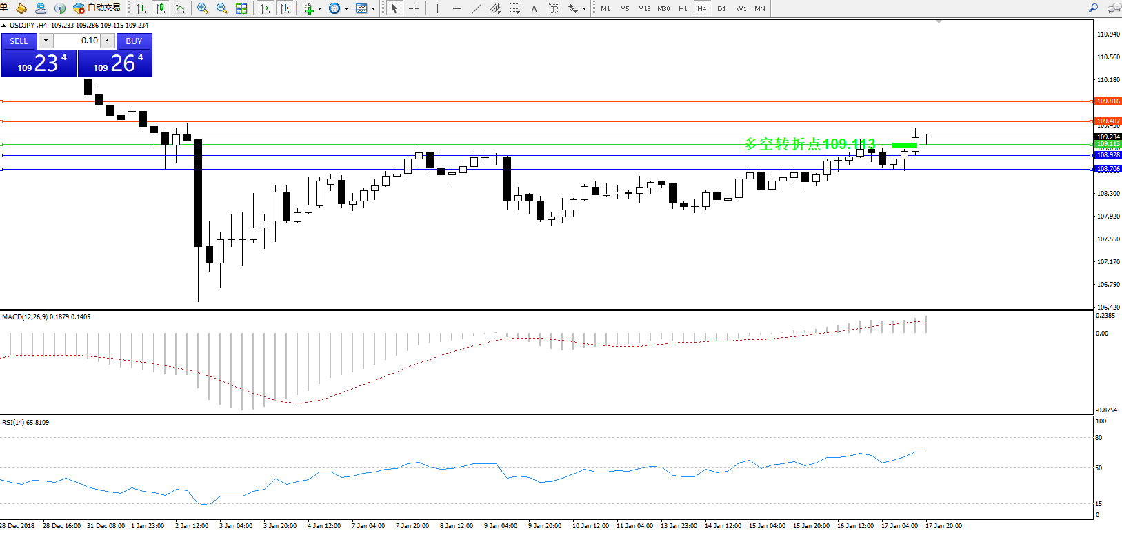 交易策略:109.113上方看涨,目标109.487、109.816