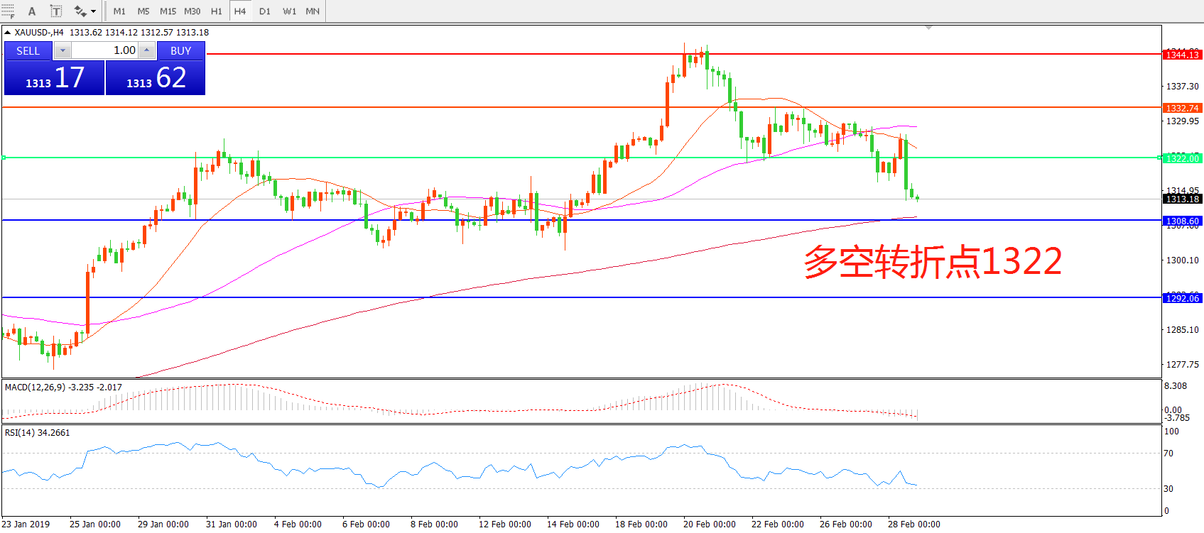 多空转折点:1322.00