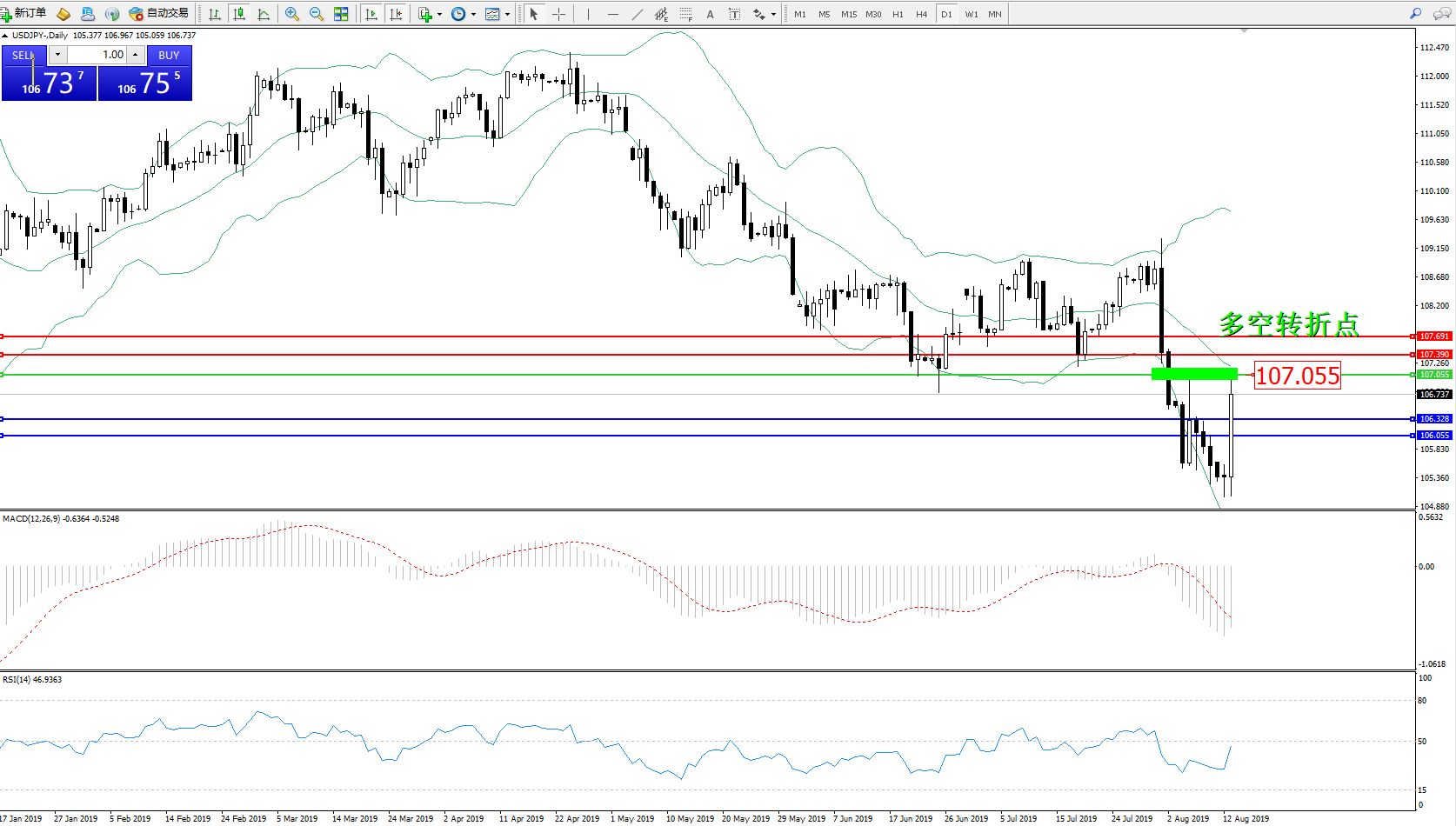 美元兑日元反弹至106。7关口。此前市场避险情绪高涨,使得避险日元获得提振。美国联邦基金利率期货显示美联储2019年降息的概率在美国CPI数据公布后下降,提振了美元,但眼下市场仍聚焦在避险中,有隔夜阿根廷的局势等等,外加对全球增长放缓的担忧。央行能做的是有限的,而很多国家的央行都在接近记录水平的低利率状态中,但这很难阻碍全球经济增长放缓。
