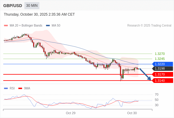 在 1.3220 之下,看跌,目标价位为 1.3170 ,然后为 1.3140 。