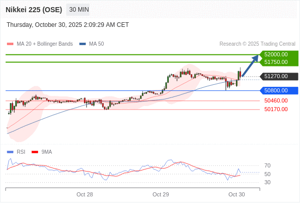 在 50800.00 之上,看涨,目标价位为 51750.00 ,然后为 52000.00 。