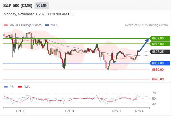交易策略: 在 6867.00 之上,看涨,目标价位为 6918.00 ,然后为 6932.00 。