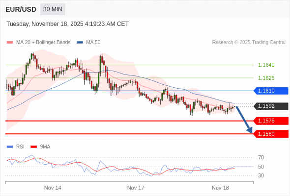 在 1.1610 之下,看跌,目标价位为 1.1575 ,然后为 1.1560 。
