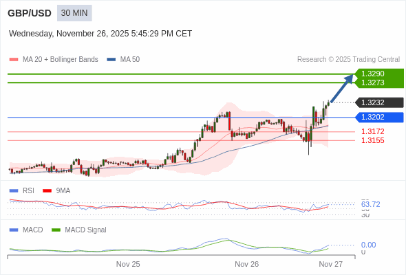 交易策略: 看涨,当 1.3202 为支撑位。
