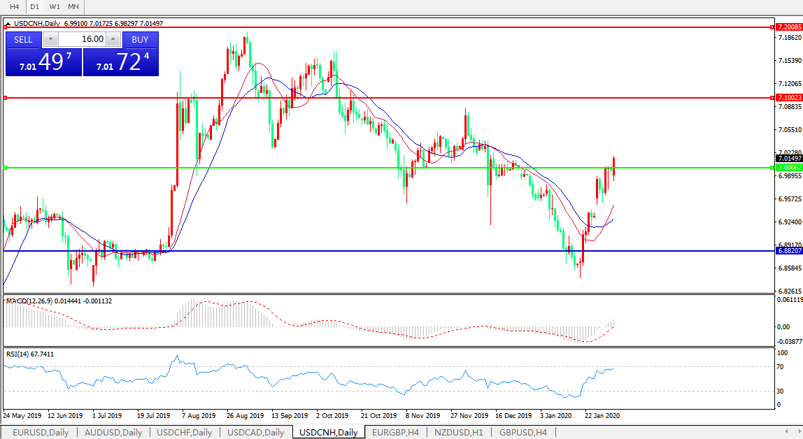 交易策略: 在7.0000之上,看涨,目标价位为7.1000,然后为7.2000。
