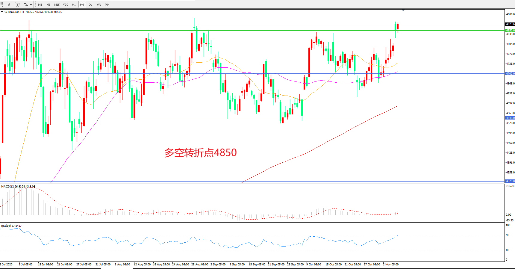 交易策略:在4850.00之上看涨,目标5000.00       5150.00