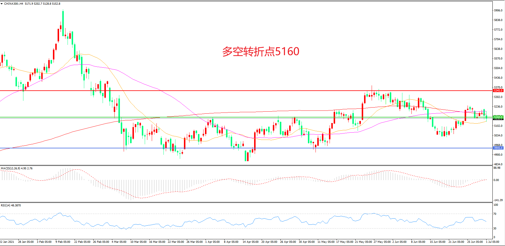 多空转折点:5160.00