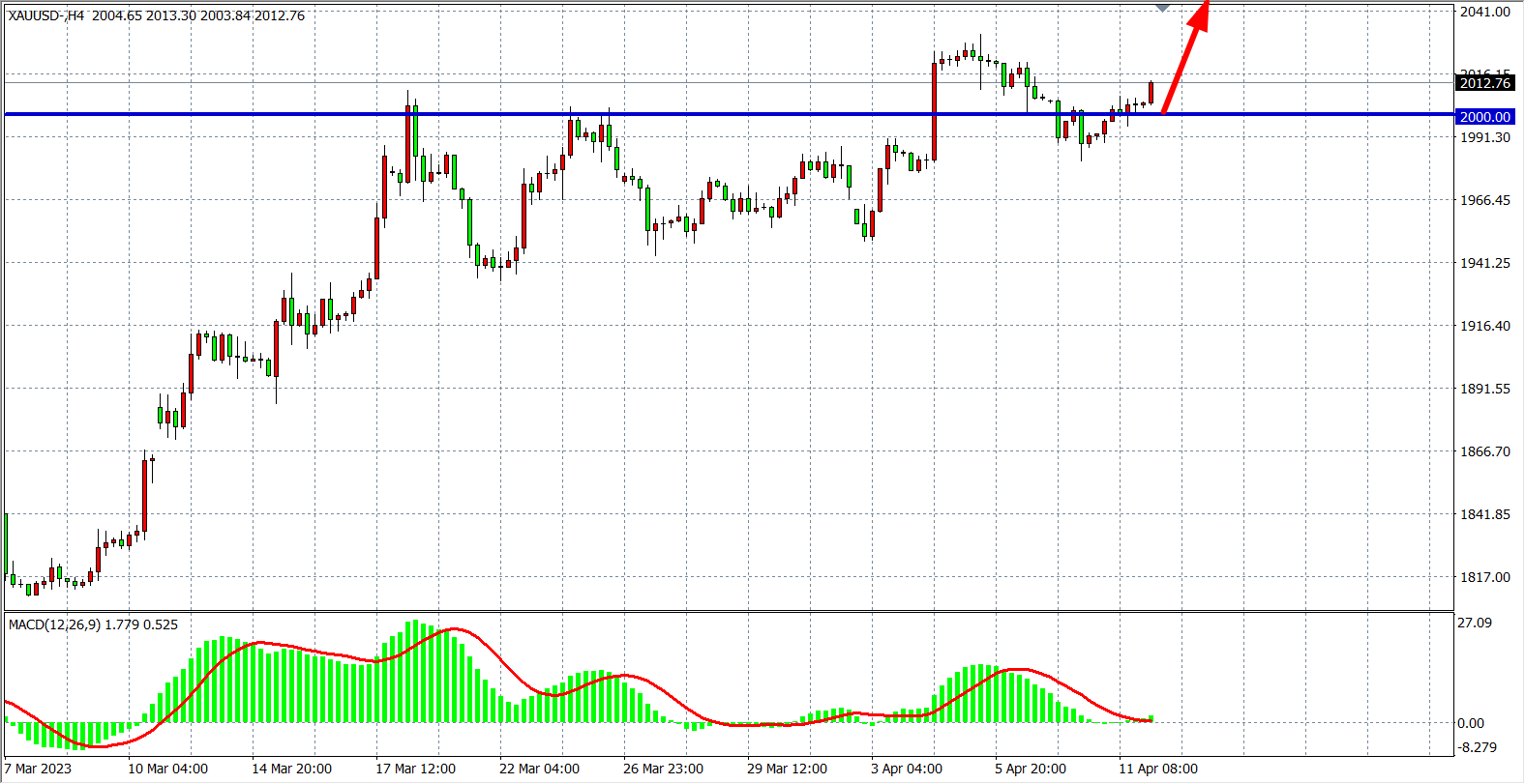4小时图看,黄金在回调1980附近后企稳反弹,重返2000点之上,同时MACD量能在零轴之上重新小幅放量,趋势重新回归多头,以2000为多空分水岭,在2000之上看2030-2050附近。
