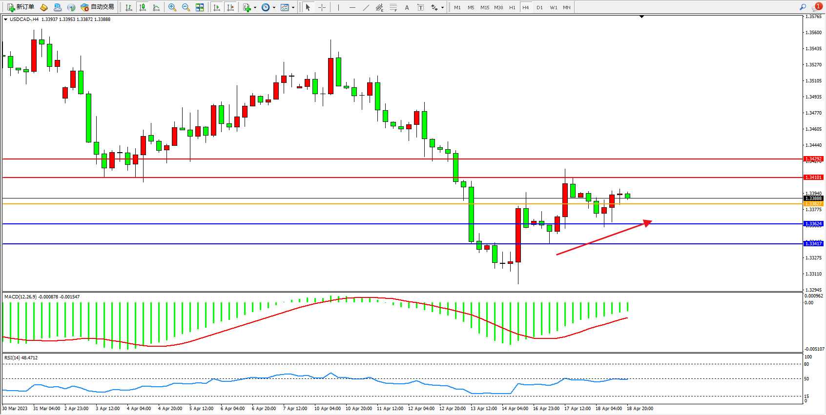 美元兑加元维持1.33888附近震荡,加拿大通胀降至近两年来最低水平,3月份CPI同比上涨4.3%,为2021年8月以来最低水平。