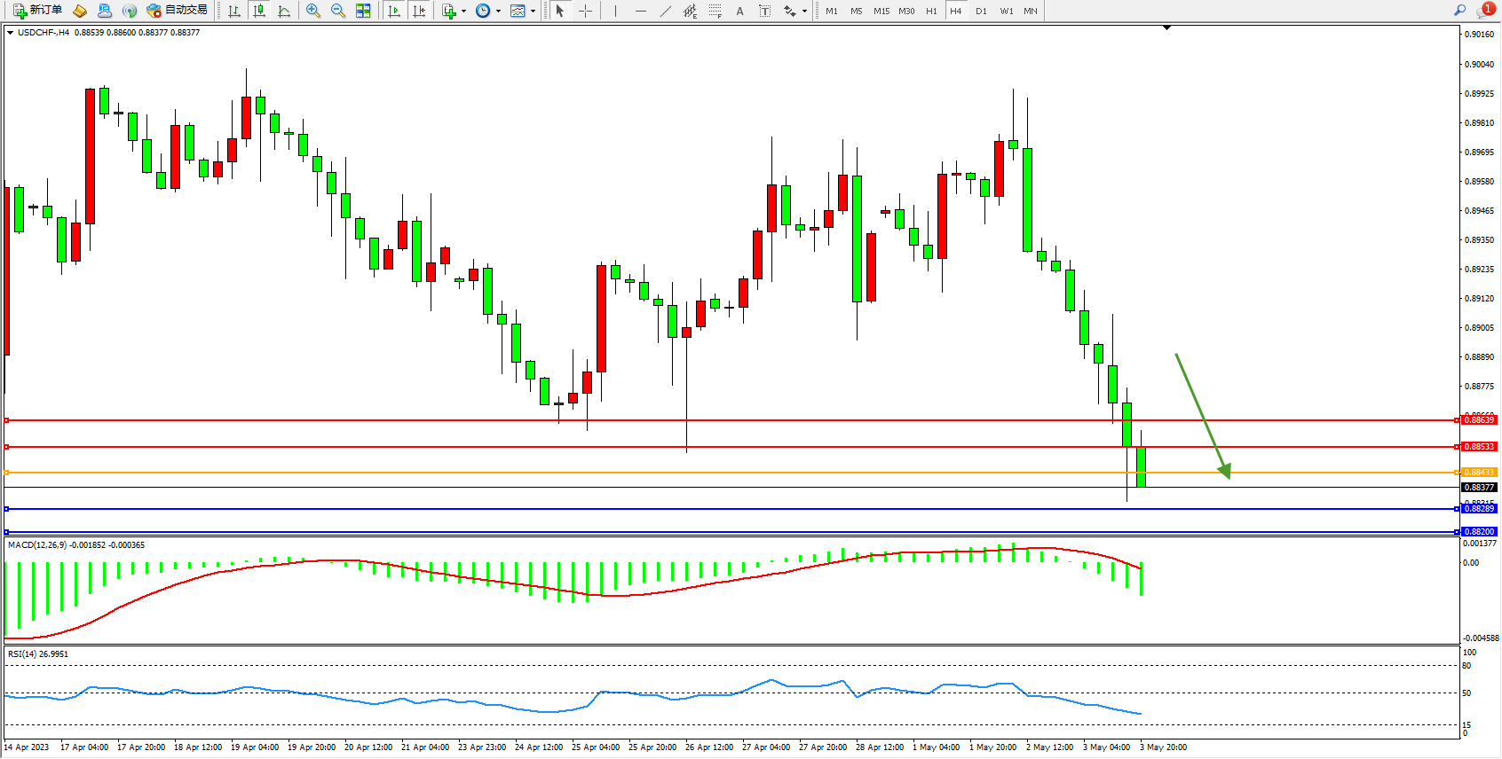交易策略:0.88433下方看跌,目标0.88289 0.88200
