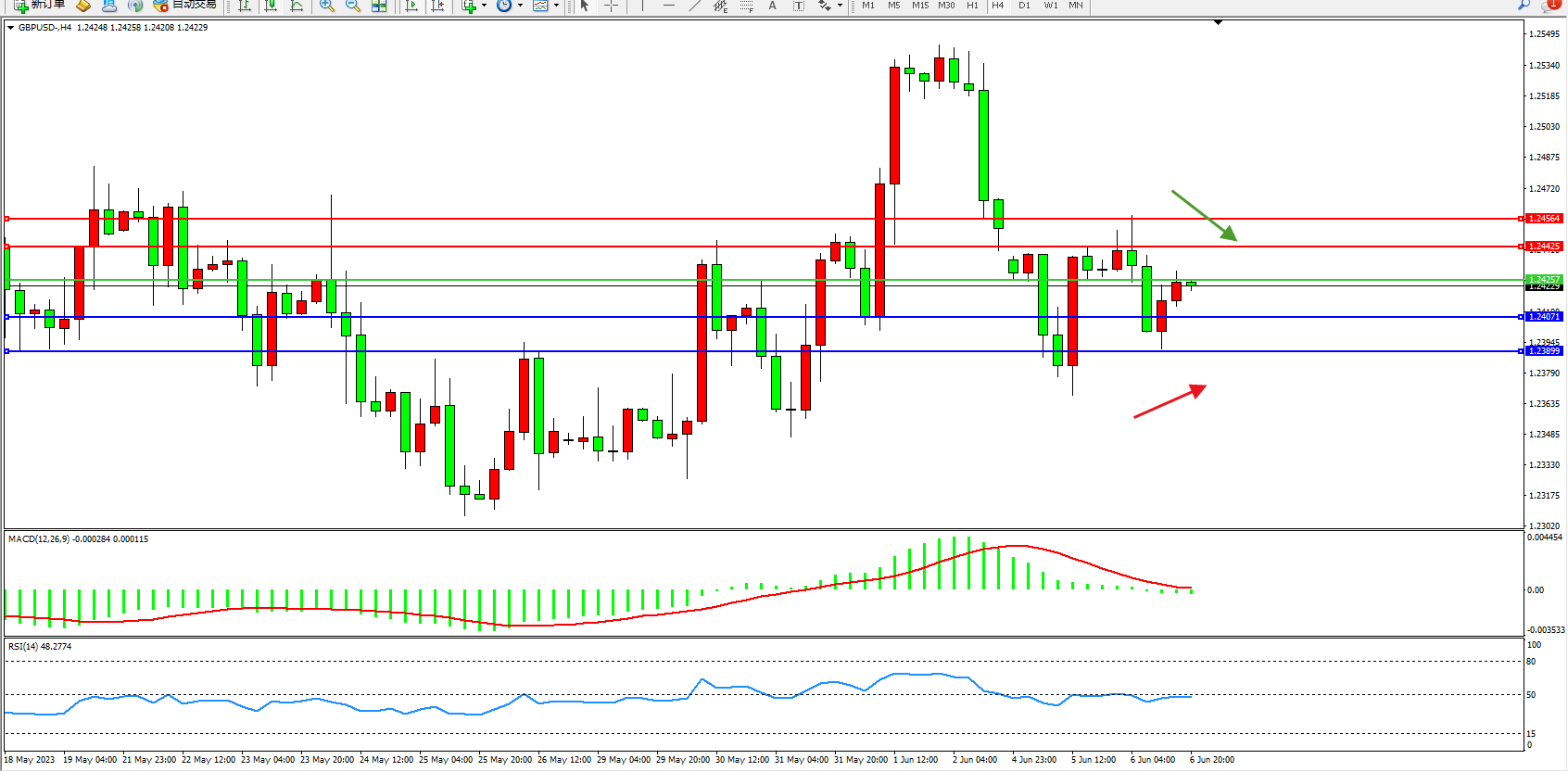交易策略:1.24257下方看跌,目标1.24071  1.23899