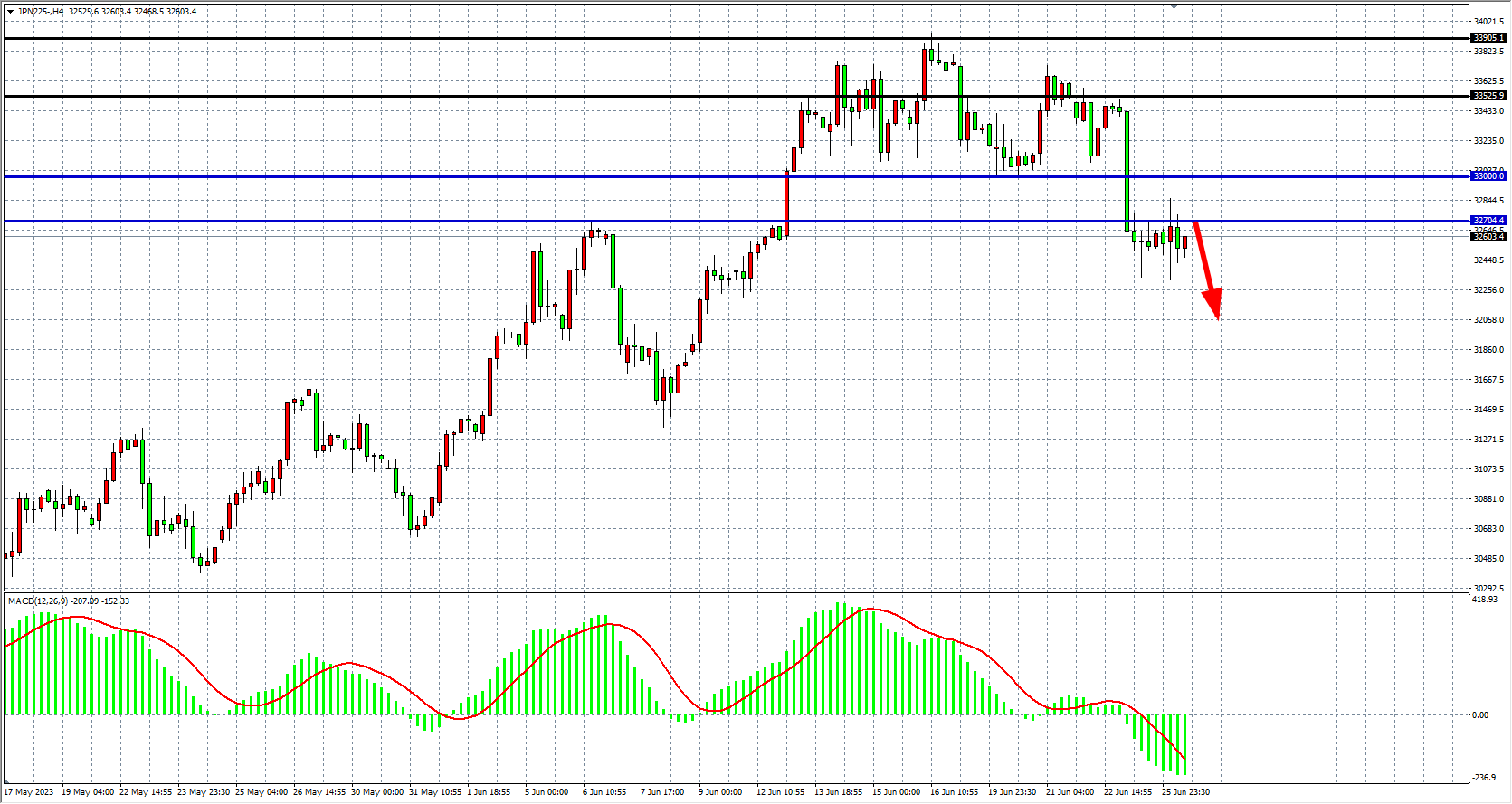 周一(6月26日)日经225指数收盘下跌55点,跌幅0.17%,报32726.50点。因美国和欧洲上周公布的疲弱的商业调查数据引发对全球经济放缓的担忧,日本股市下滑。