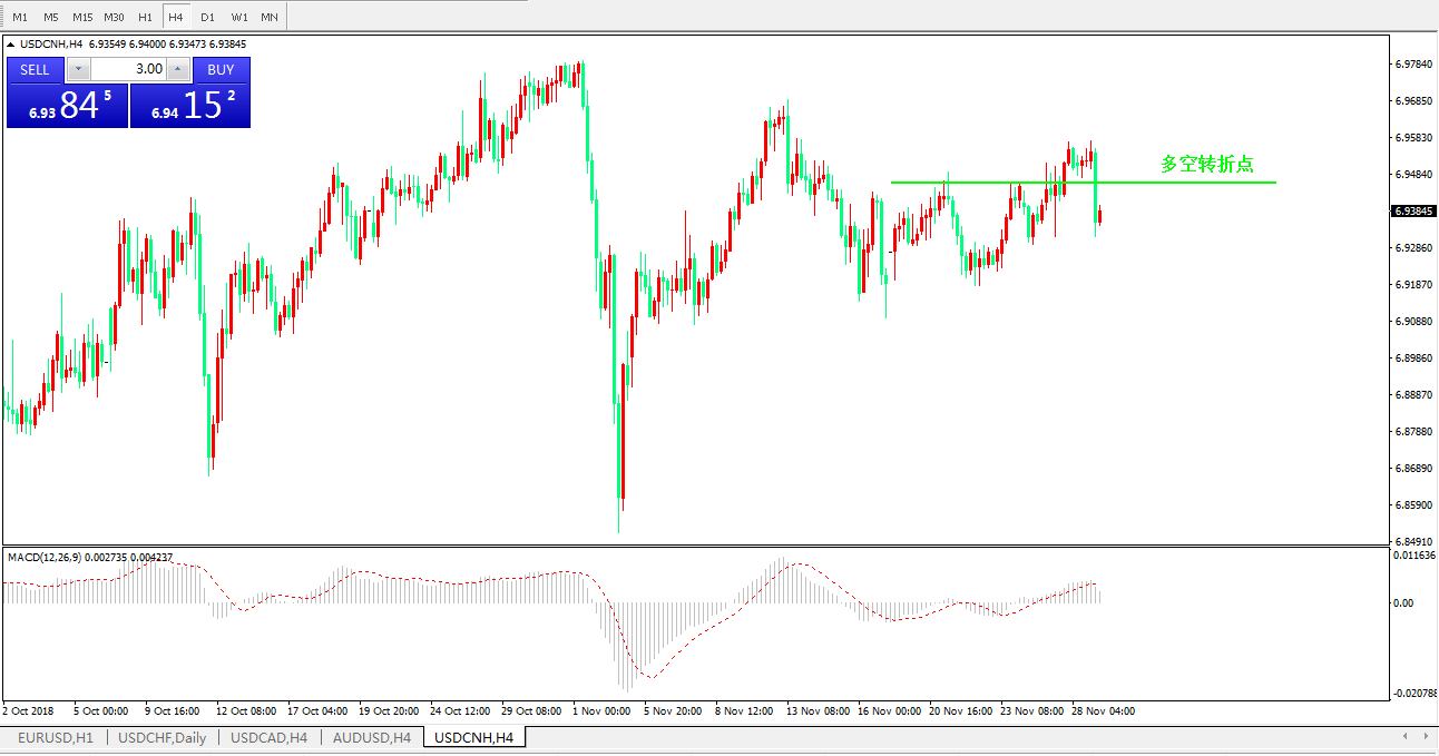 交易策略: 在6.9460之下,看跌,目标价位为6.9314,然后为 6.9208 。