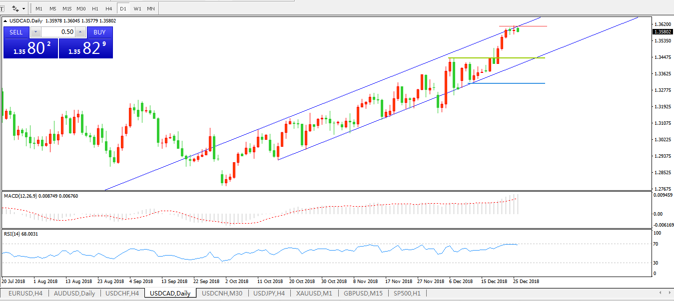 交易策略: 1.3450上,看涨,目标价位1.3600,然后1.3715